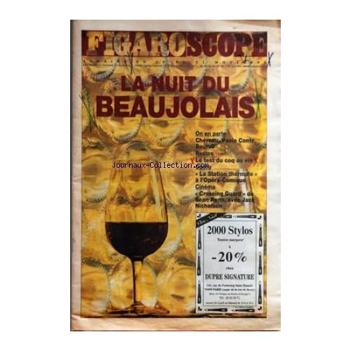 FIGARO SCOPE [No 15938] du 15/11/1995 - LA NUIT DU BEAUJOLAIS - CHEREAU - PAOLO CONTE - BOURVIL - RESTAURANTS - LE COS AU VIN - OPERA - LA STATION THERMALE A L'OPERA-COMIQUE - CINEMA - CROSSING GUARD DE SEAN PENN AVEC JACK NICHOLSON - EDITH PIAF - HARRY BELAFONTE Details