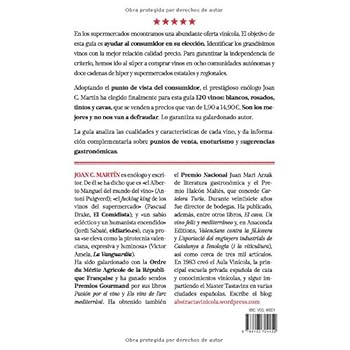 Con imagen de la botella, crítica de cada vino, e información adicional sobre gastronomía, enoturismo y puntos de venta. DESCUBRA vinos jovenes y de crianza que pueden mejorar en botella y se convierten en reservas a precio de ganga. Vinos a buenos precios que merecen matrícula de honor. Blancos, rosados, tintos y cavas con nota de 4 y hasta 5 estrellas. Con sugerencias gastronómicas, lista de puntos de venta, y explicación precisa de sus virtudes y defectos. Recomendados por JOan C. Martín, el autor que más ha contribuido a dinfudir la cultura del vino en España, y que lleva años escribiendo guías best seller en su sector. Porque puedes fierte de su criterio. Independencia garantizada. Nadie, ni bodegas ni marcas, influir en su criterio. Un escritor reputado al que no se le caen los anillos por entrar en el super a comprar vinos de menos de 15 euros. Ahora, con un nuevo concepto de guía muy selectiva, que le ha permitido que saquen sobresaliente y matrícula de honor la mayoría de vinos seleccionados.